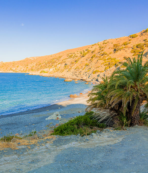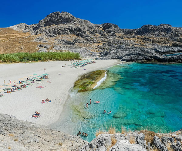 Towards the west, in a short distance from Agios Pavlos, is the staggering Triopetra – named after the three majestic rocks – which consists of two endless beaches with spectacularly clear waters, an idyllic scenery of peaceful surroundings and natural beauty far from madding crowd and fast-paced cities. The beaches are ideal for relaxation and visitors are welcome to also enjoy a wide variety of local food and delicacies at the area’s restaurants and taverns.