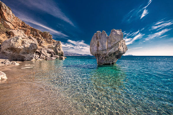 Towards the west, in a short distance from Agios Pavlos, is the staggering Triopetra – named after the three majestic rocks – which consists of two endless beaches with spectacularly clear waters, an idyllic scenery of peaceful surroundings and natural beauty far from madding crowd and fast-paced cities. The beaches are ideal for relaxation and visitors are welcome to also enjoy a wide variety of local food and delicacies at the area’s restaurants and taverns.